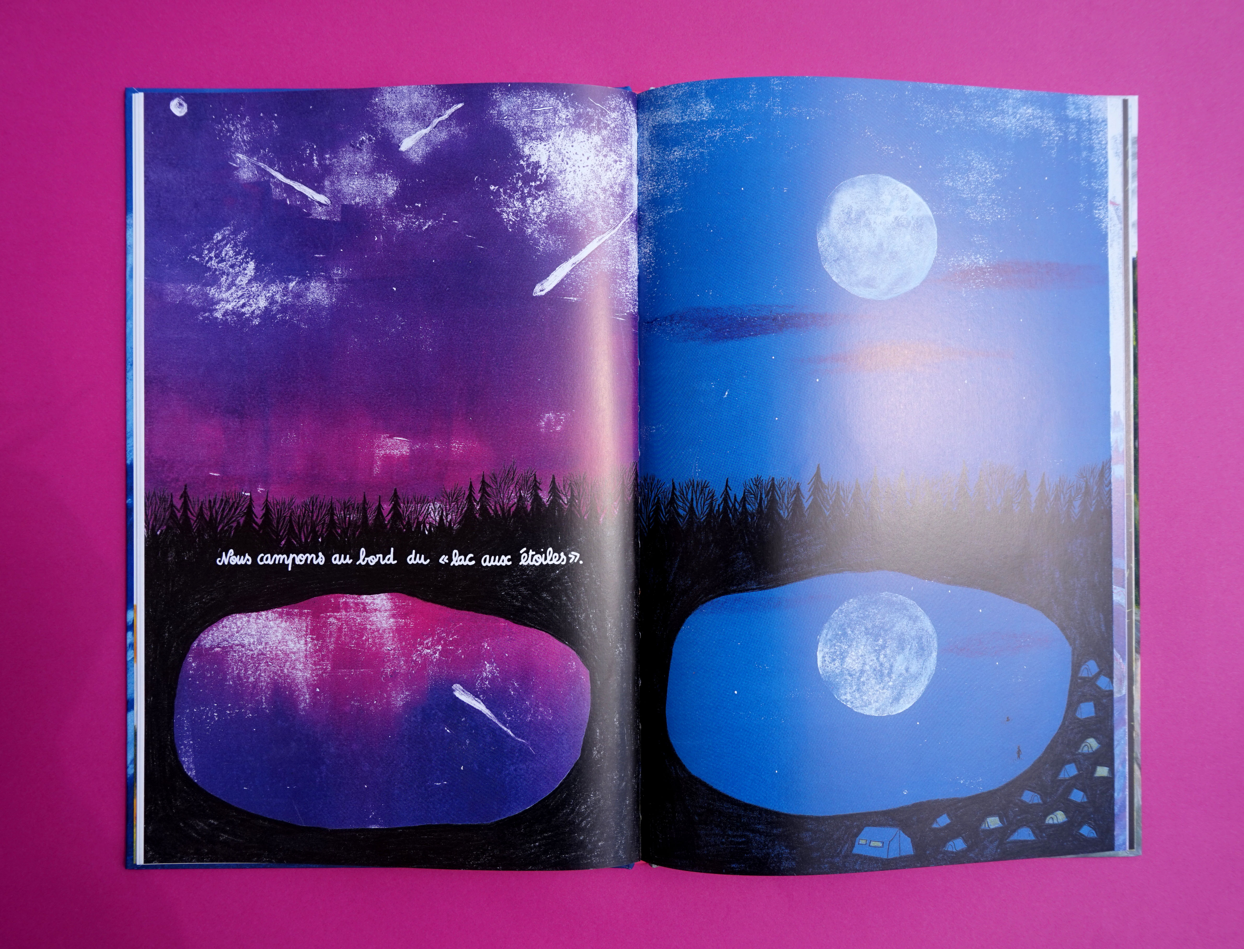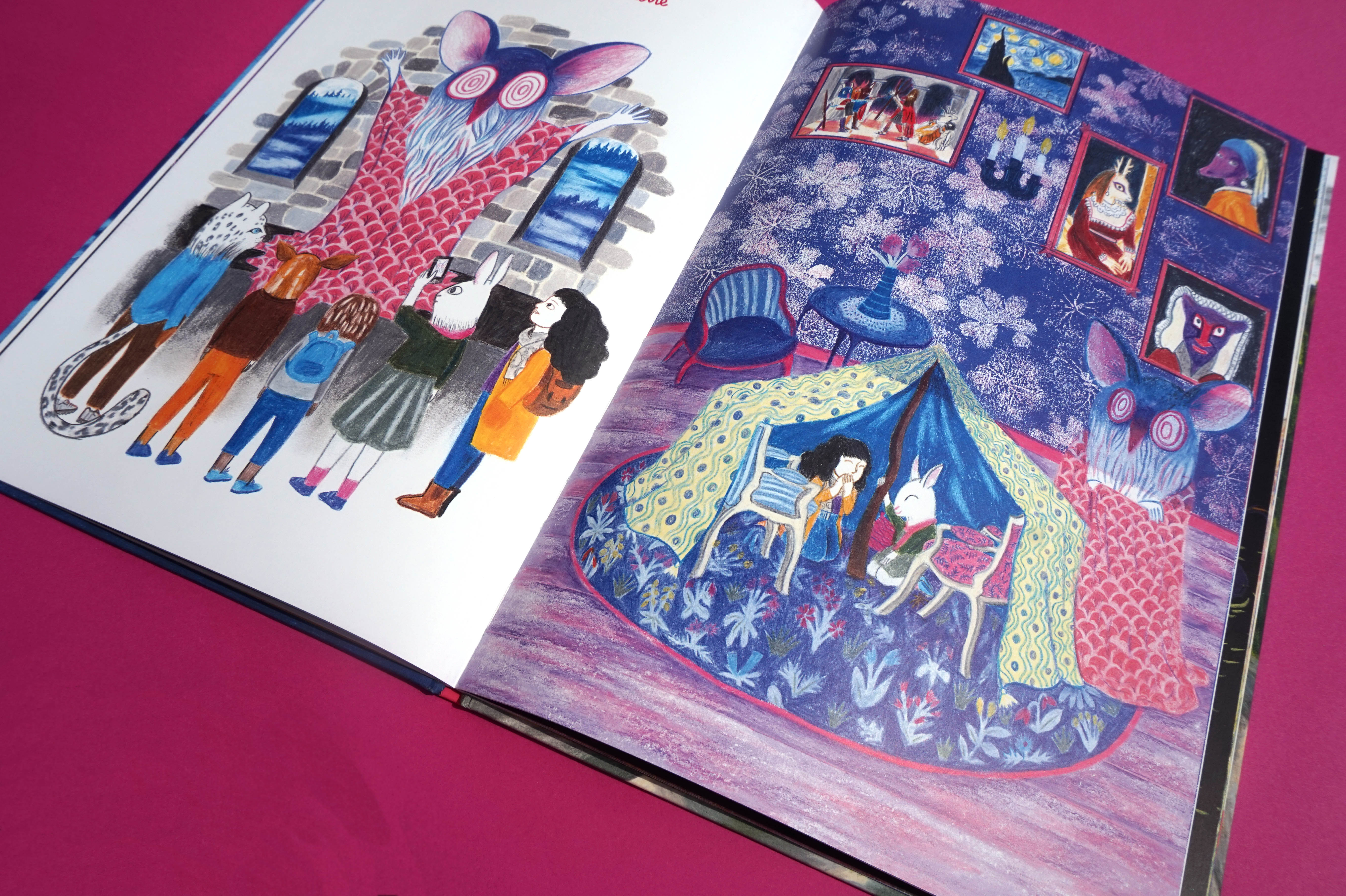 Le décalage entre texte et images plonge le lecteur dans un délicieux voyage, à lui de décider s’il est dans l’imagination débordante d’une fillette ou dans un réel voyage hors du commun. Les illustrations grandioses de Mathilde Poncet nous embarquent dans un univers à la fois familier et fantasmagorique.