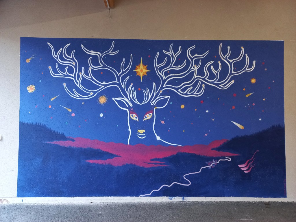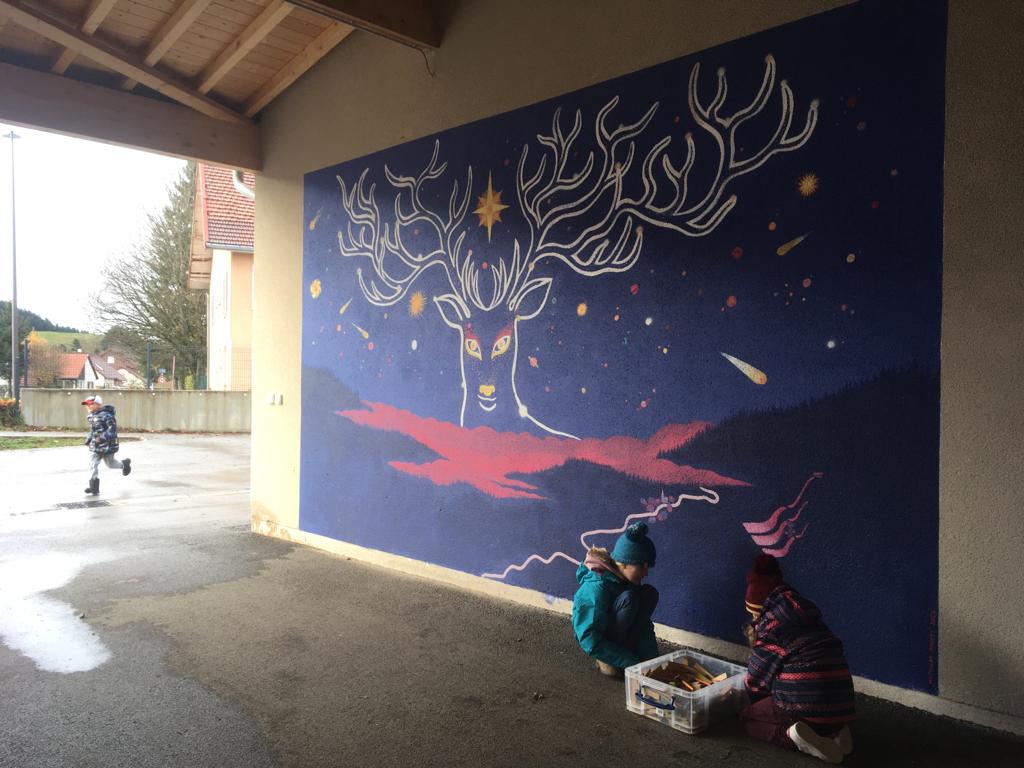 Fresque réalisée sous le préau de l’école primaire de Chaux-Neuve en septembre 2022.