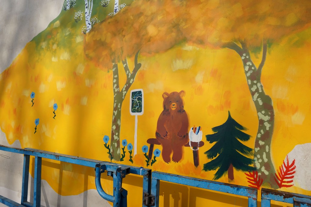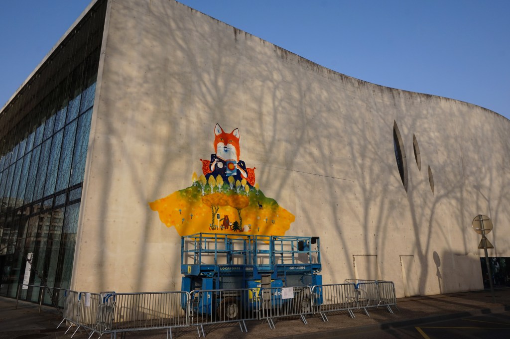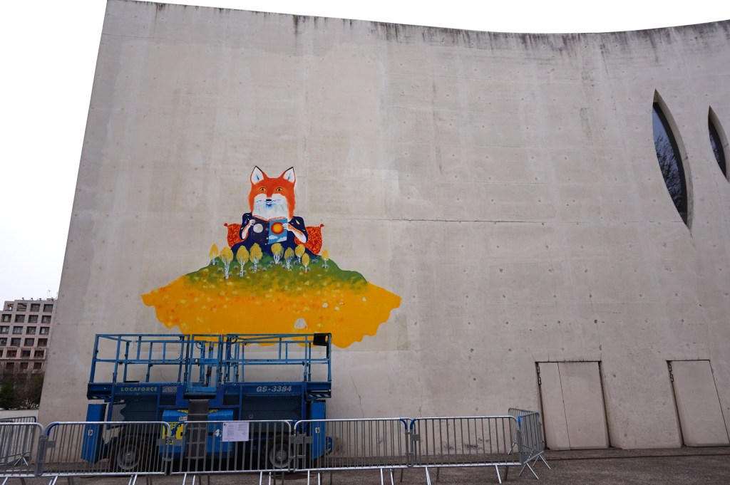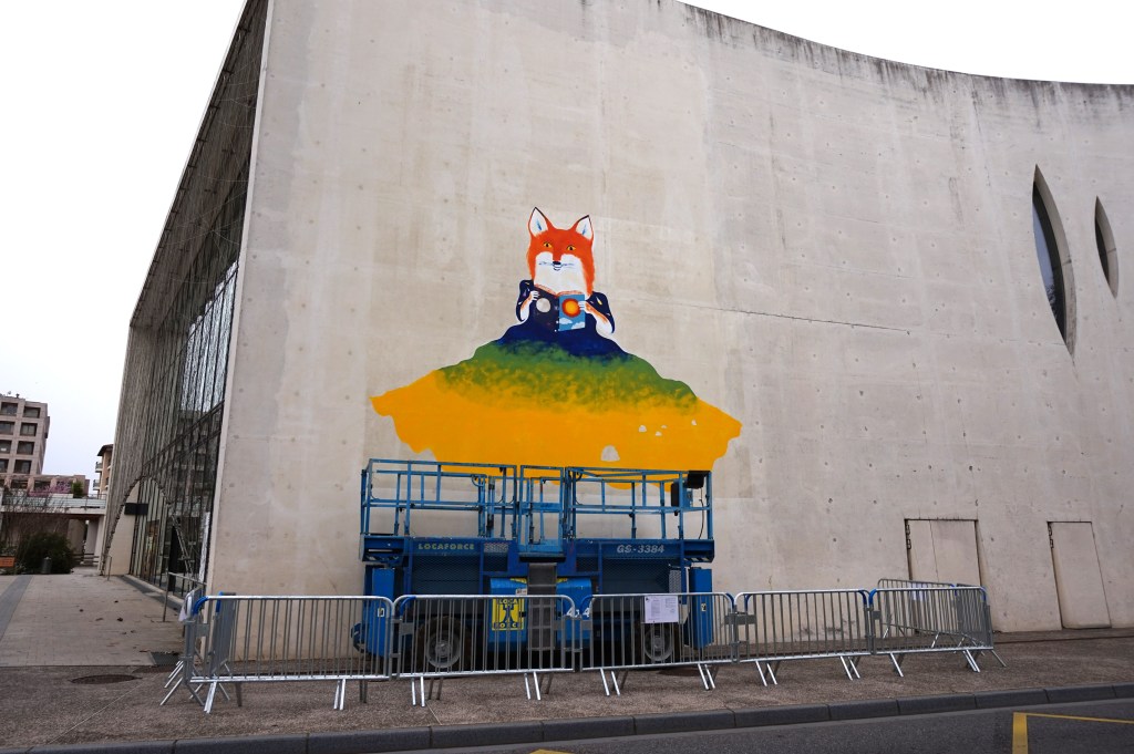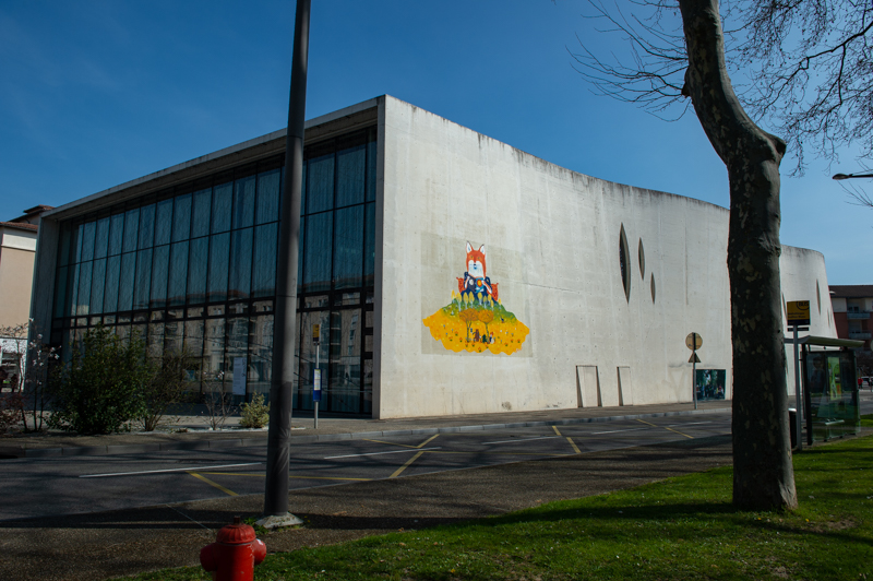 Fresque éphémère 5×6,50m réalisée sur le Pavillon Blanc Henri Molina à Colomiers.
